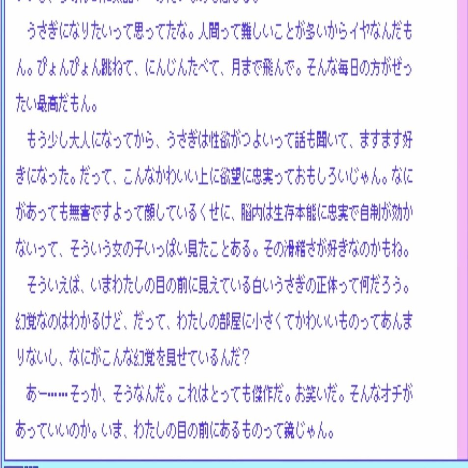 こちらは珍しく、うごくメモ帳を使って映像などを作っておられる方です。音声についてはおそらく製作当時、あまり触れていなかったと思われます。使用する素材についての深掘りや、製作物の中で素材の要素を拾うこと、また理解を深めることにすごく重きを置いている方です。