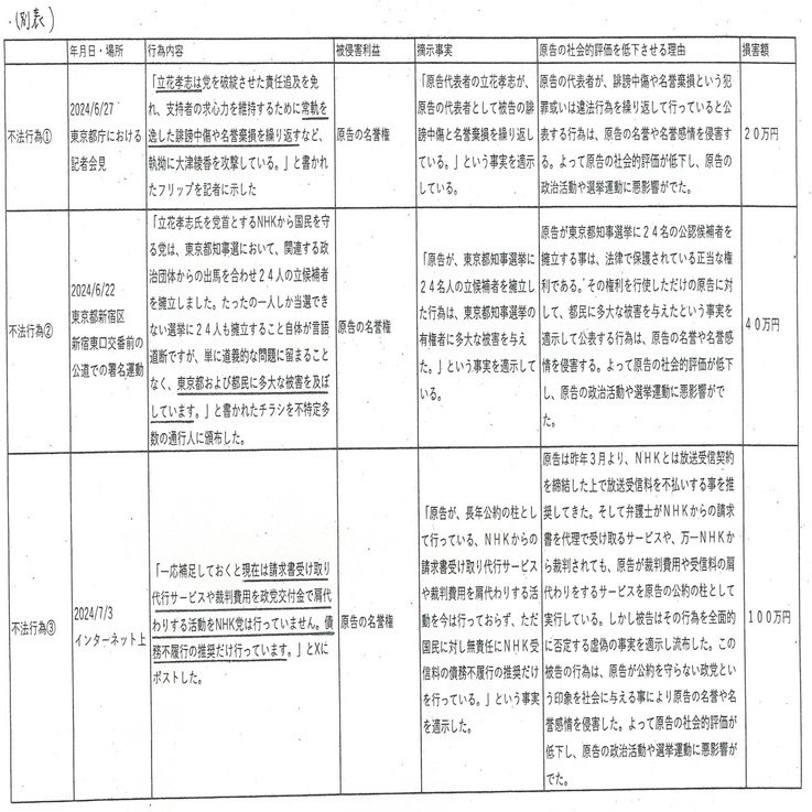 実にくだらない裁判ですが、立花孝志は以上の3つを訴えてきました。
