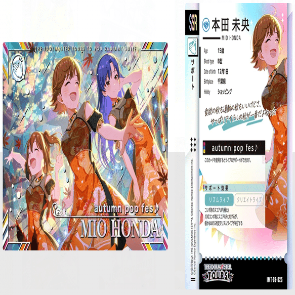 ・排出停止になった過去衣装を着た別イラストカードで、実際にその衣装としてゲームで使用できる衣装カードになっている