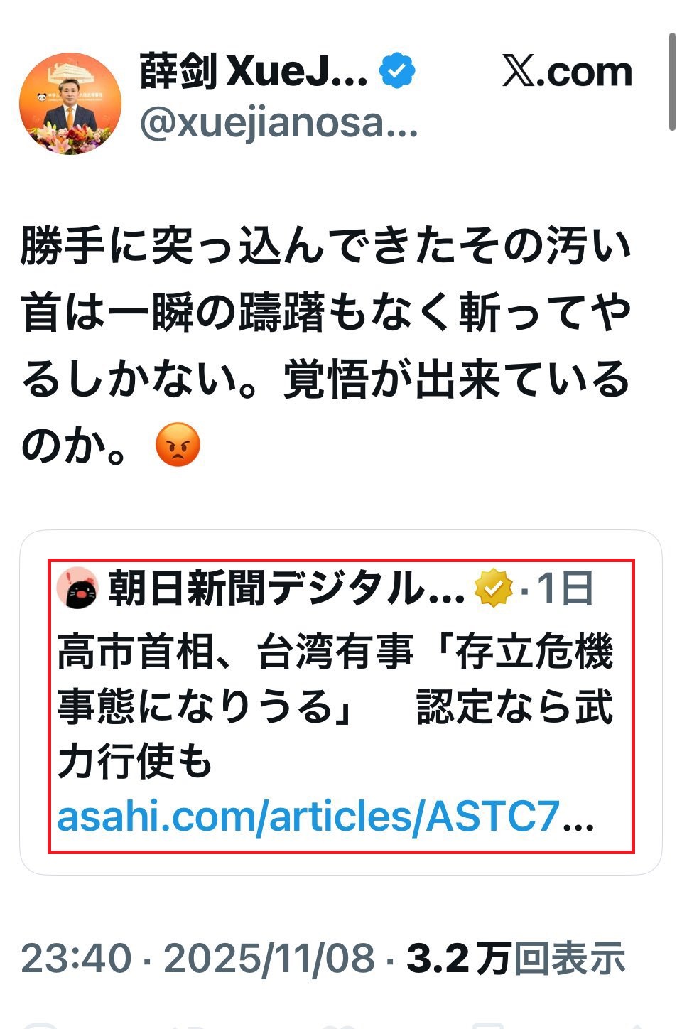 いや、さすがに中国も朝日新聞の記事鵜呑みにして批判しないでしょう。