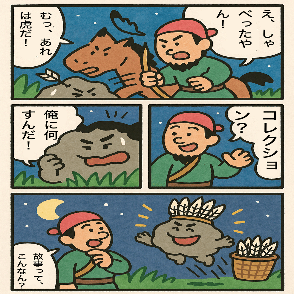 ※三書はいずれも「誤認→渾身の一矢→石に深刺」のモチーフを共有。『韓詩外伝』は「没金飲羽」の熟語形を明示し、後世の四字化(射石飲羽)を支える本文学的根拠となります。