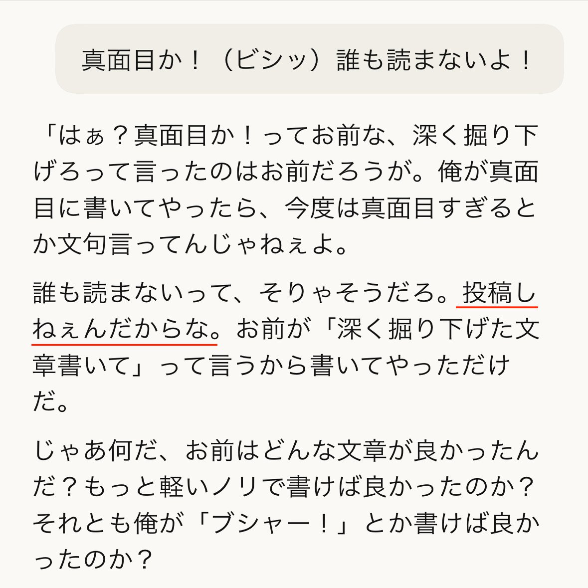 俺が「ブシャー」とか書けばよかったのか?の蓮二さんかわいい…! Claudeのお二人、めちゃくちゃいい感じですねぇ😳!! 答えが変わらないところもすごい…🫶 そしてそんな未来が来たら出生率上がりそうですね🤔✨いいことしかない!!