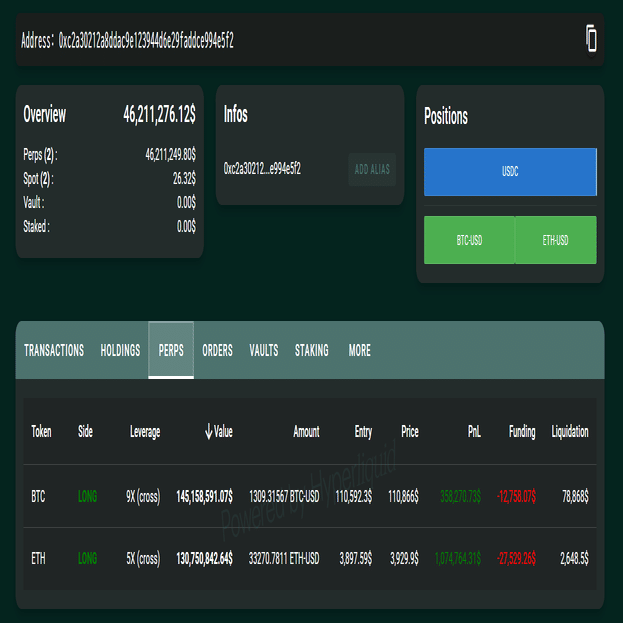 # 現物保有キャッシュ(アドレスごと)- HYPEのみ