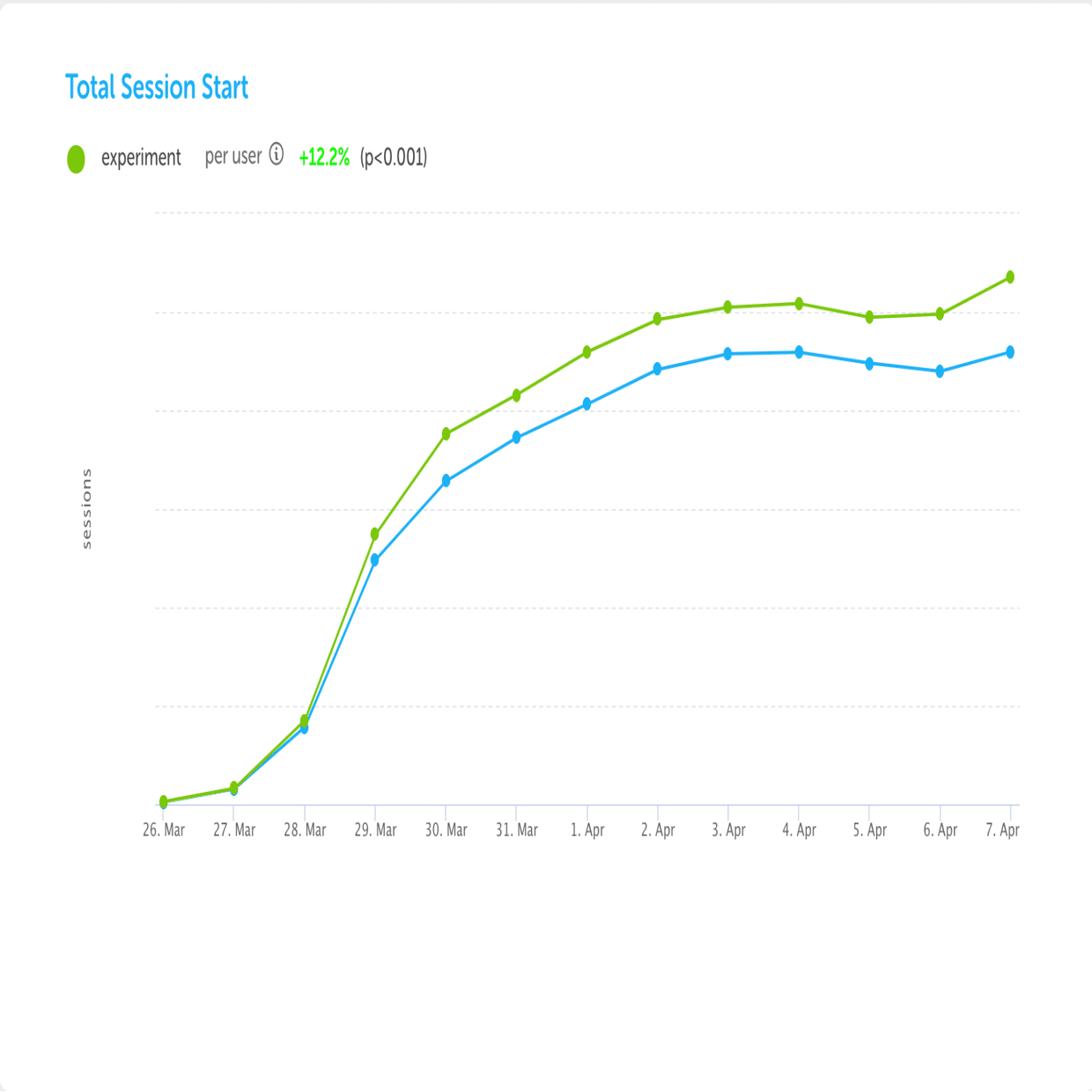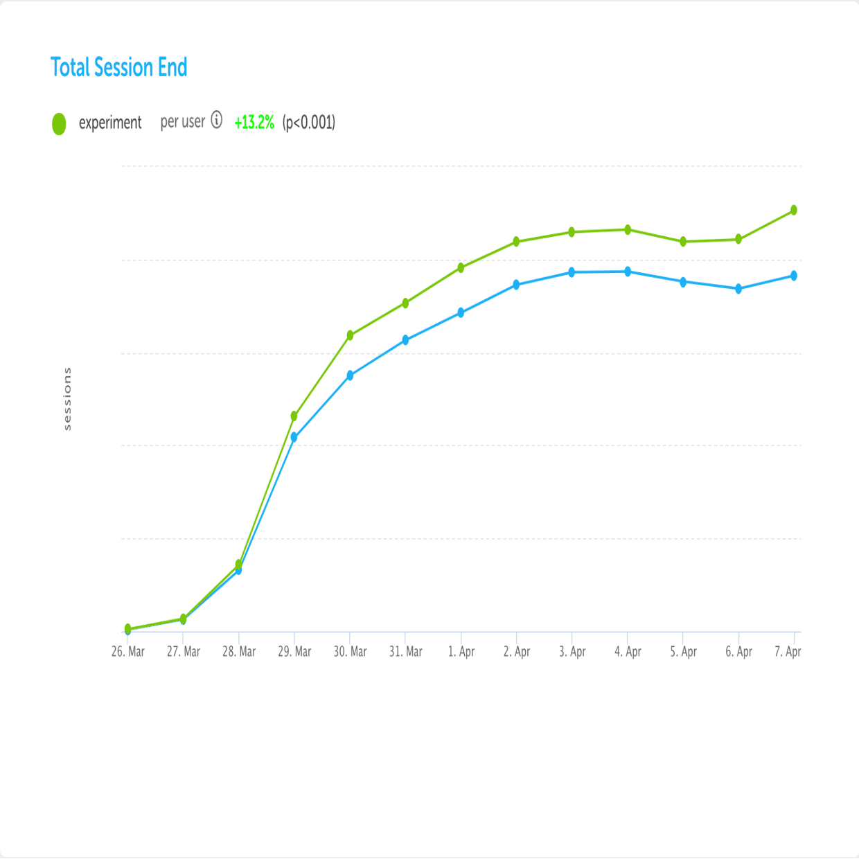 毎晩、実行中のテストのレポートを作成し、関連する測定値について統計分析を行い、以下のようなチャートを生成します。(グラフはiOS アプリにリーダーボードを追加するテストから抜粋)