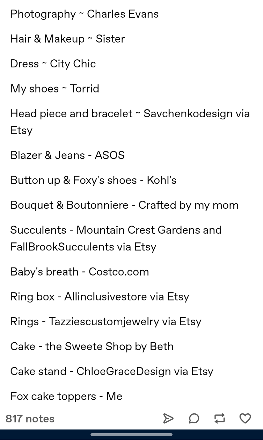 Edit: found more pics and old tumblr (link to wedding aka last update, this is an Archive) he was more stable in weight with him. Her new scrote really fattened her. Well I aint ever met a sane girl named Rebecca/Becca....For pearchan the poly/husband/boyfriend thing was far messier than in the post. The boyfriend wasn’t the husband. The husband went by Foxy and she amberlynned her way into his life. Went to visit him for a week or something and never left. They eventually got married and less than a year later she came out as poly and introduced the boyfriend. She’s mostly scrubbed the husband story from her socials because he decided that wasn’t what he signed up for and they broke up and she came out again and said she isn’t really poly, she was just unhappy and now she’s only with boyfriend because he fulfills alllll her needs. Husband pics included, you have to go way back on her Instagram to dig them up.
