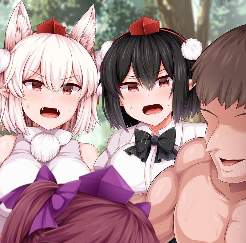 リクエストのあった天狗3人まとめて催 絵を描きました。モブ天狗まで巻き込んで妖怪の山でやりたい放題なのも描きたい欲が湧いてきますね…!文椛はたて文字無し