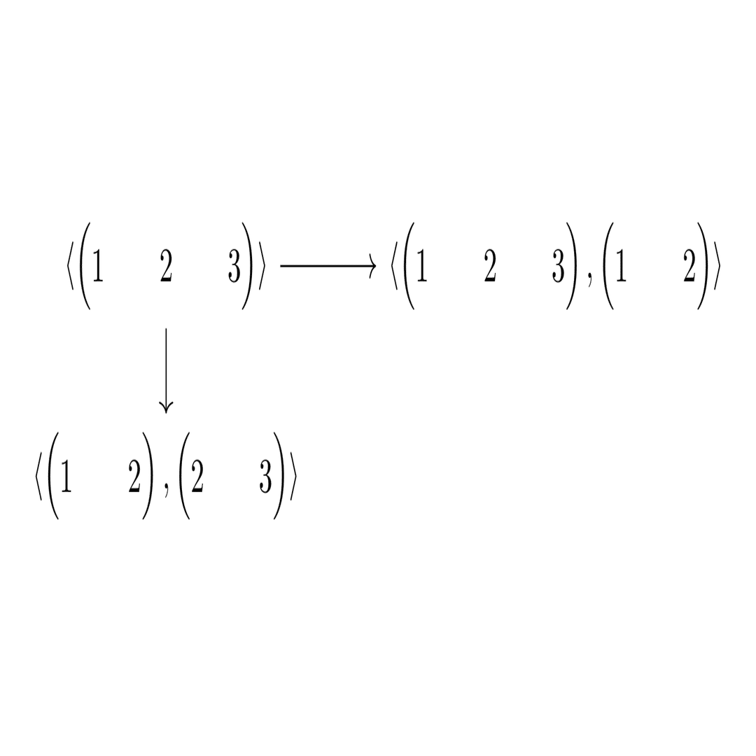 次は, \langle\begin{pmatrix}1&2\end{pmatrix},\begin{pmatrix}2&3&4\end{pmatrix}\rangle です.