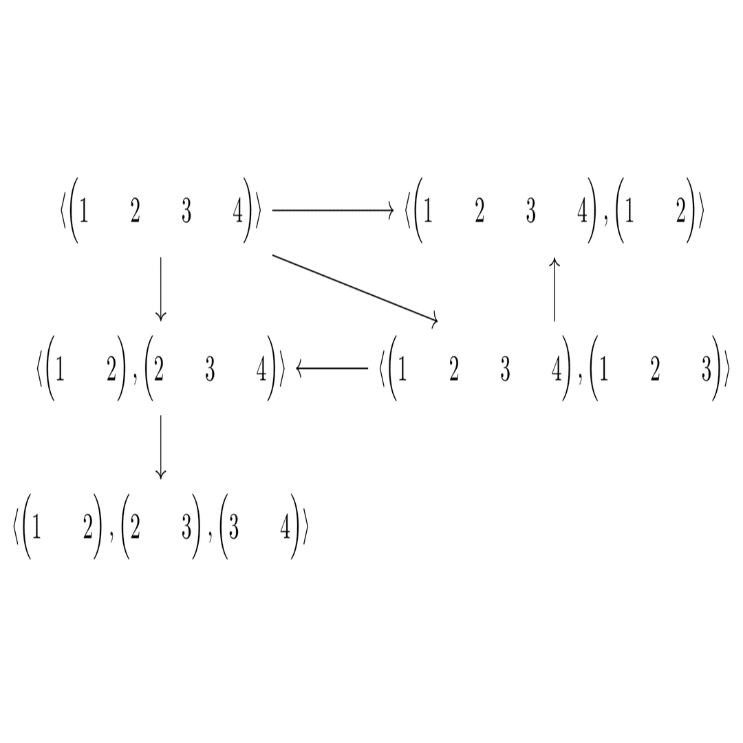 まずは\langle\begin{pmatrix}1&2\end{pmatrix},\begin{pmatrix}2&3\end{pmatrix},\begin{pmatrix}3&4\end{pmatrix}\rangle で, 4次の隣接互換からなる生成系です.