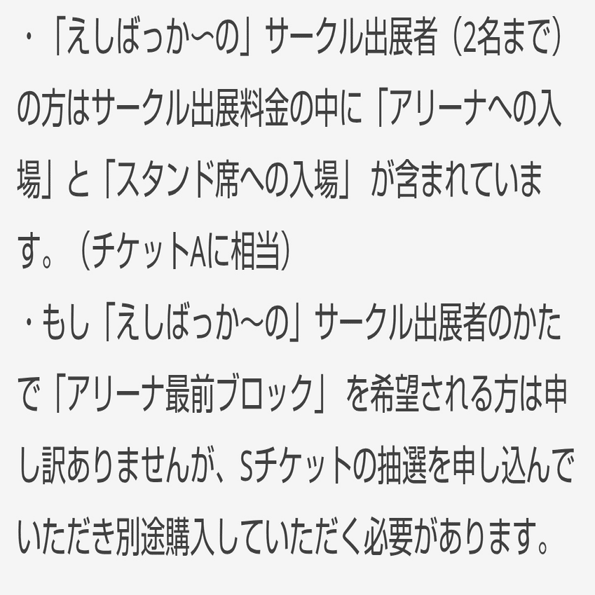 ・サイト上でもメールでも「えしばか出展にはAチケット相当の権利がある」と案内していたが誤りで本当はBチケット相当だった