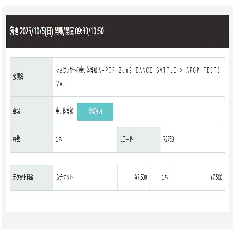 ちなみに上記の認識でいたため、S席を希望していた私は実際に抽選に申し込んでいました。