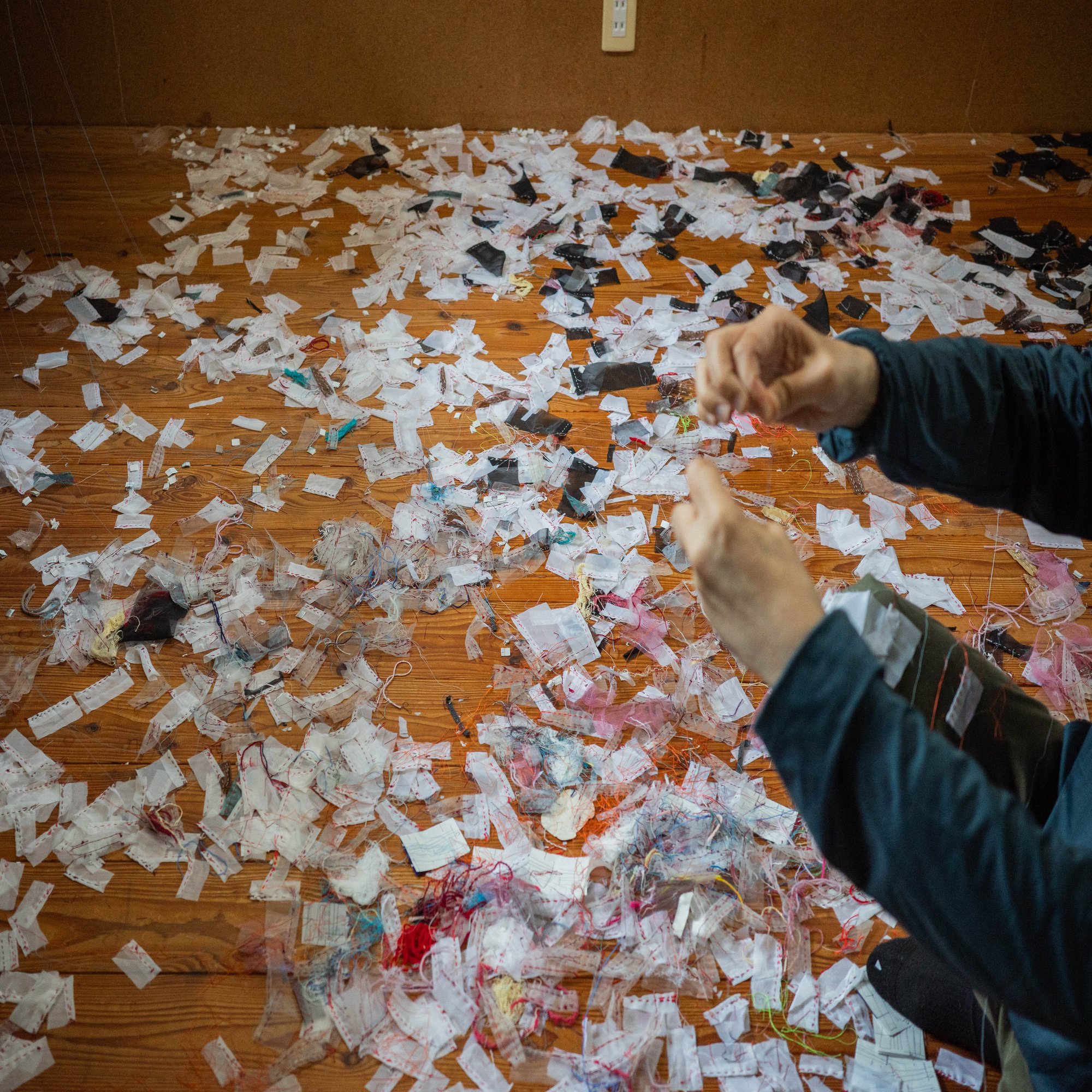 その部屋の主は、障害のある男性だった。おびただしい数の布のかけらが、雪みたいに床を埋め尽くしていた。彼は部屋のすみで背中を丸め、無言で布を見つめて、次々と縫っていた。