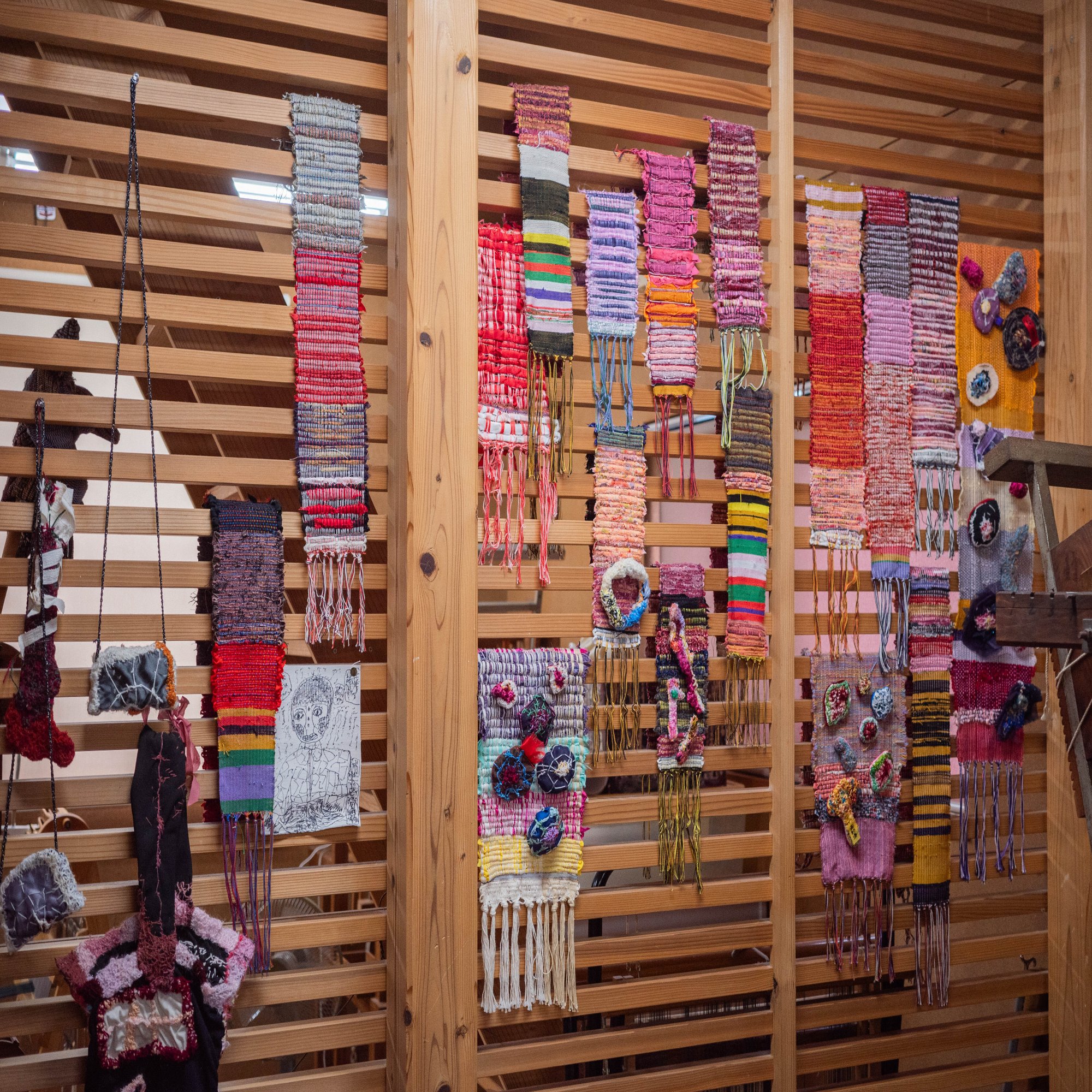 工房の中は、刺繍の作品があちこちに飾ってある。ものすごい数だけど、職員さんたちは、パッと見ただけで誰が刺繍したかわかるらしい。