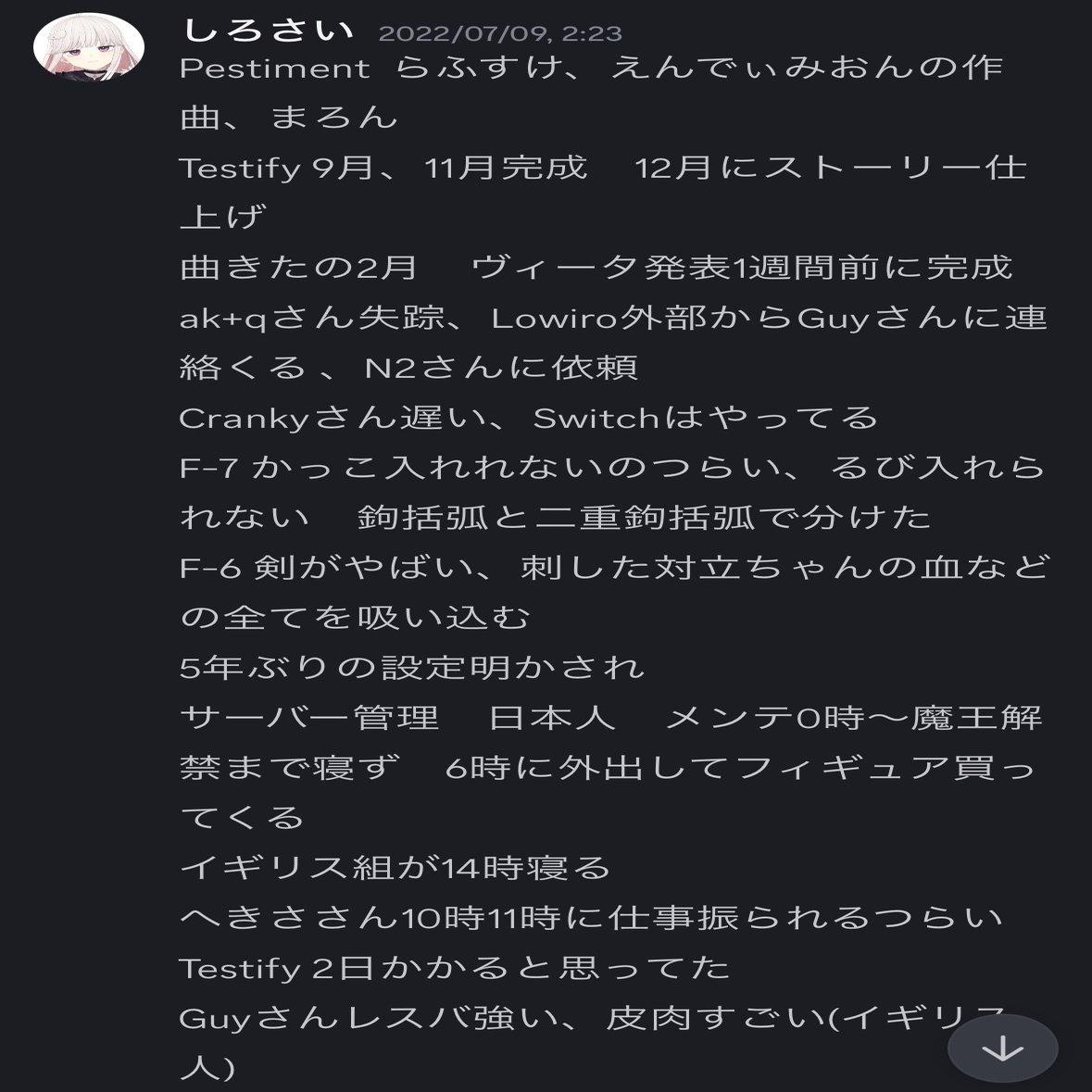 なのでこの言葉には大きな希望と、夢への第一歩。Arcaeaの運営である佐伯へきさ氏との約束のような、当時はそう思っていました。私はとても浮かれていました。当時私は未成年であった為、社会経験も乏しくこれが公私混同している発言ということに気付けませんでした。