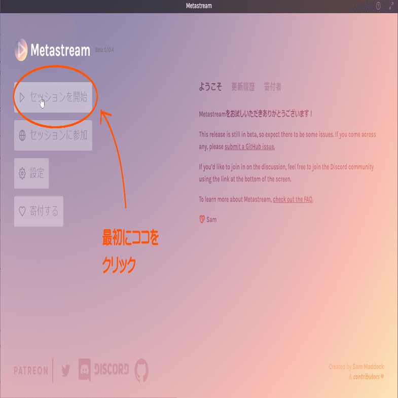 最初にアドオンを入れる為、まず「セッションを開始」をクリックします