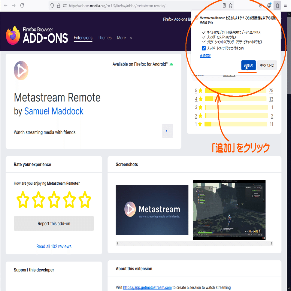 ブラウザに合った方を選び、拡張機能のインストールページへ移動します