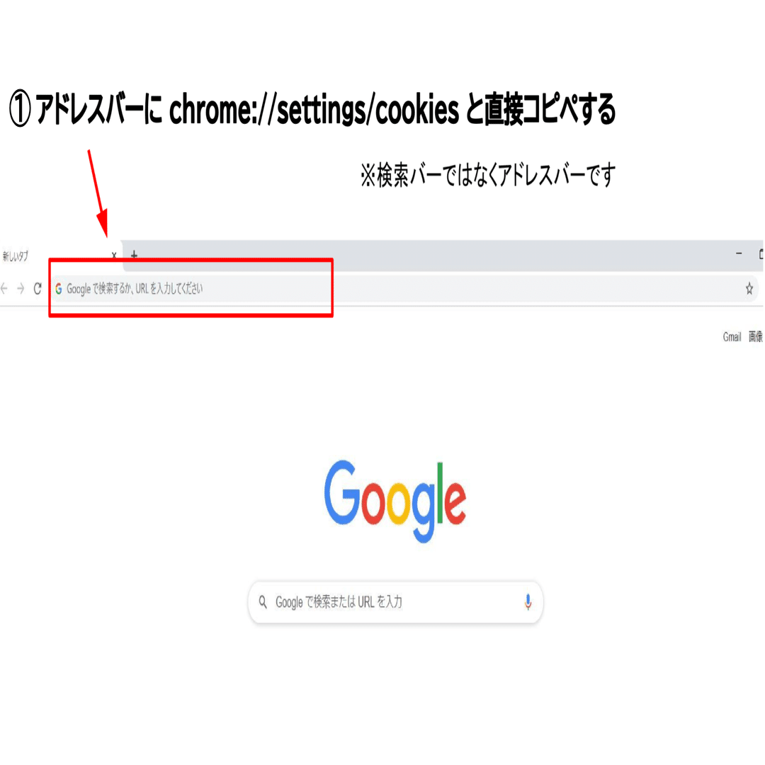1. まず「chrome://settings/cookies」という一文を以下から丸ごとコピーします