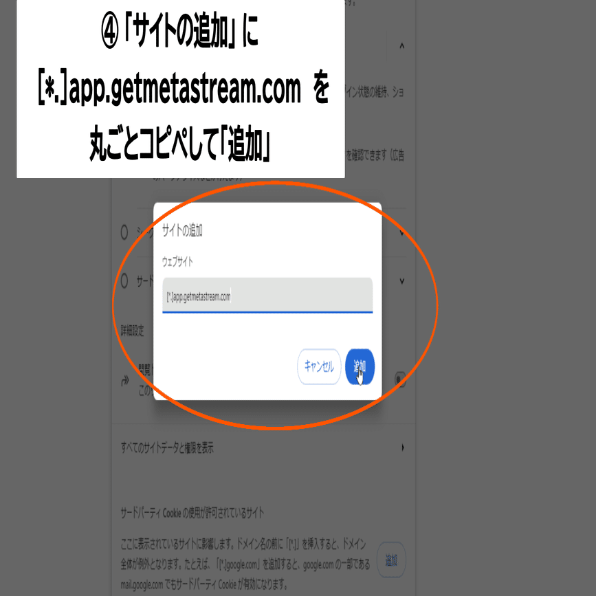 3.「サードパーティーCookieの使用が許可されているサイト」から