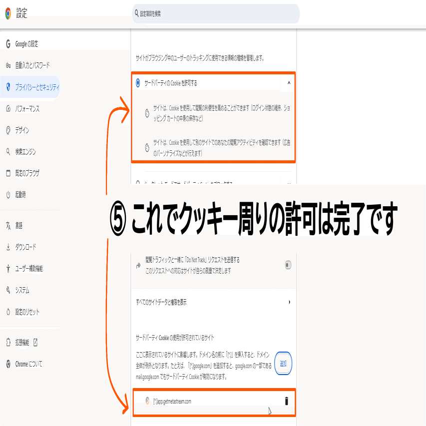 5.【必読】サードパーティー製Cookieを許可する