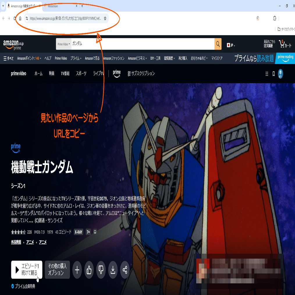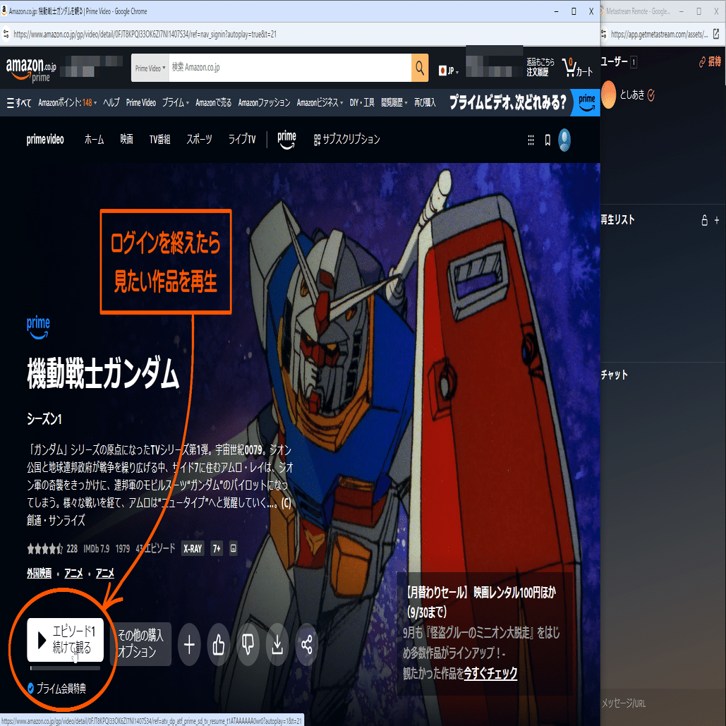 2.見たい作品をMetastreamへ転送しよう