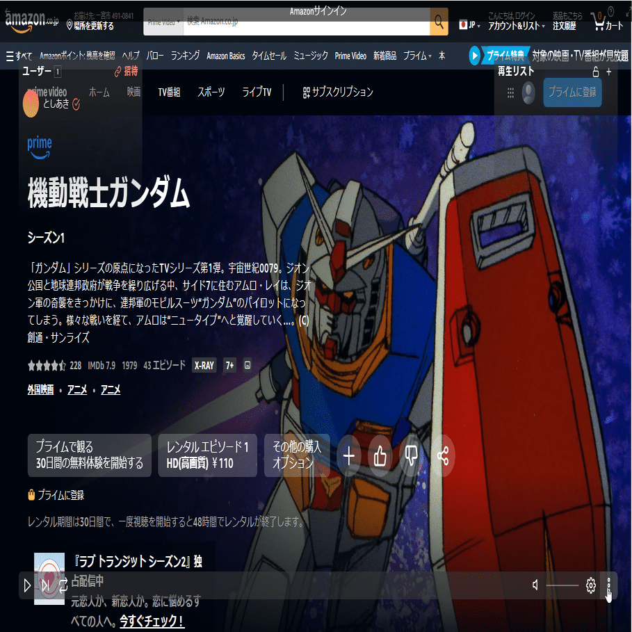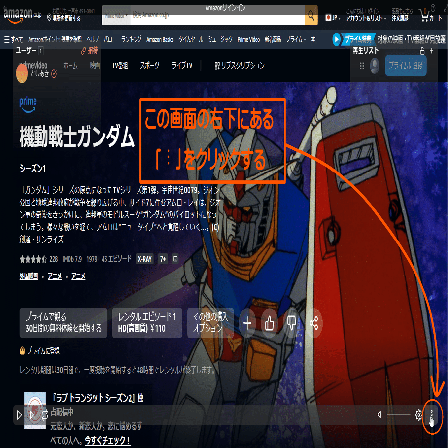 ログインを終えたら、見たい作品の再生ボタンを押します