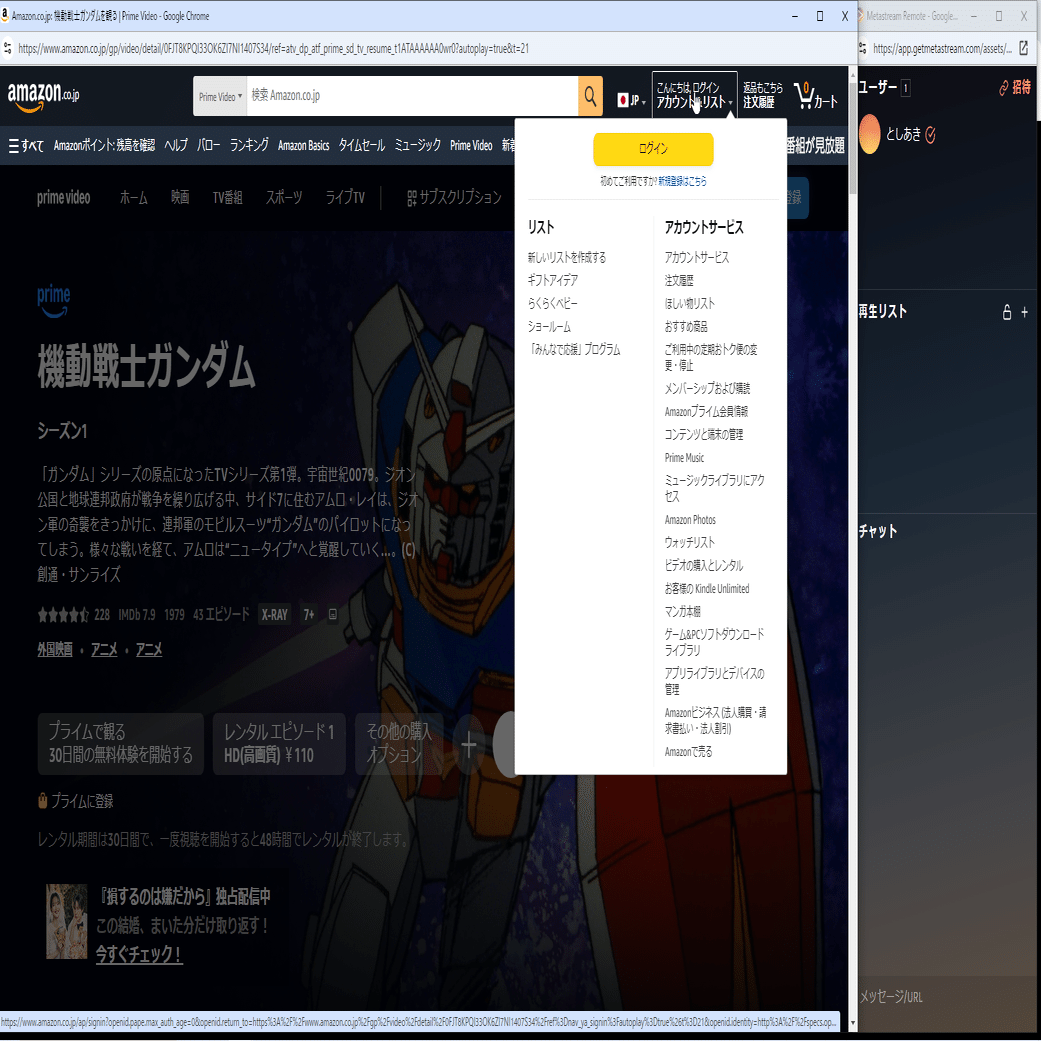 具体例:MetaStreamの拡張機能のページを開きます