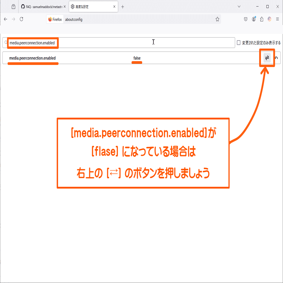 中央の文字が flase になっている場合は「 ⇄ 」のマークをクリックして