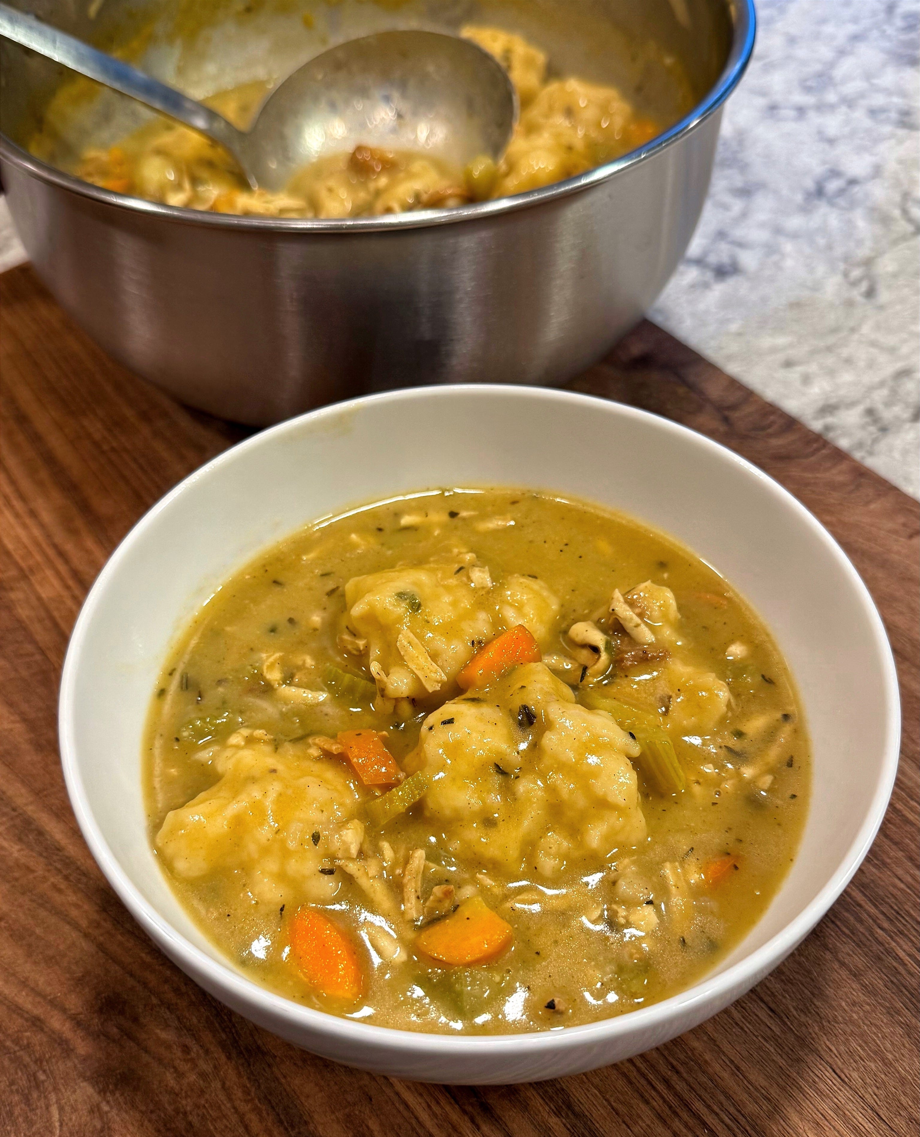 Though this soup is a labor of love, it’s so worth it and feels like a hug in a bowl. It’s cozy, warming, and full of flavor - honestly, everything you’d want in a soup! The dumplings are homemade *insert hair flip* - they’re eating to put together, I promise - and, as mentioned, I used tofu instead of chicken.