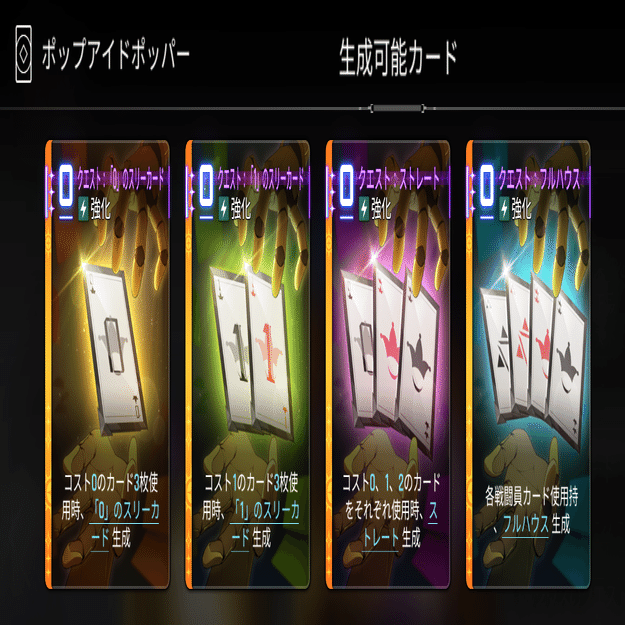 ・0コストのクエストカードを入手できる「ポップアイドポッパー」