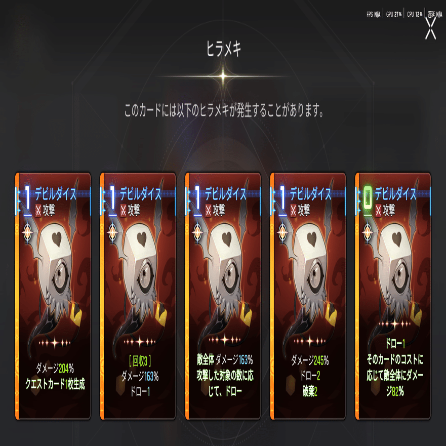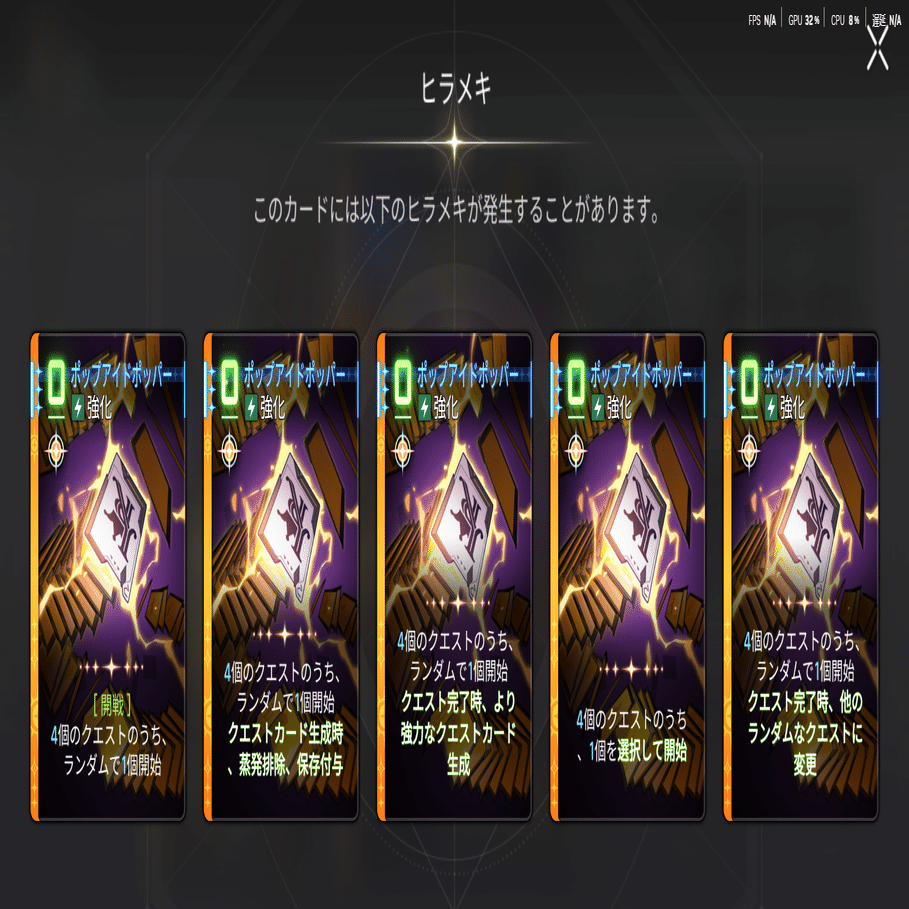 ヒラメキでは強化カードになったりとかなり性質が変わる。