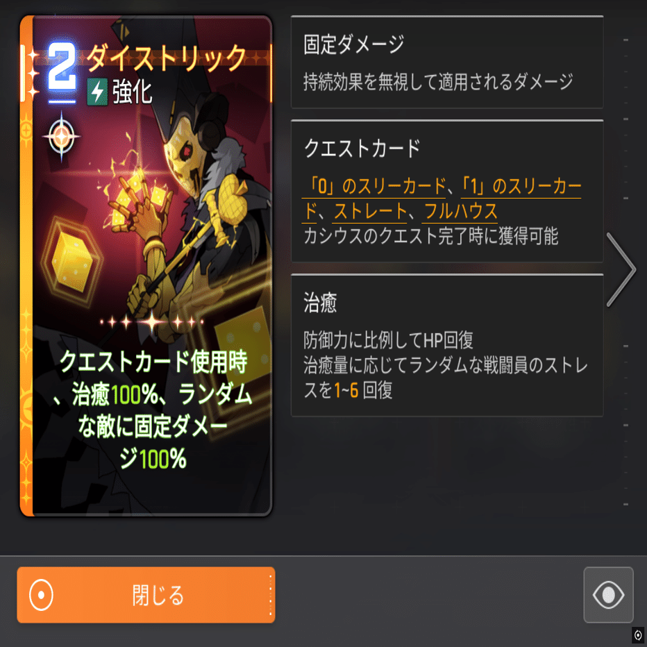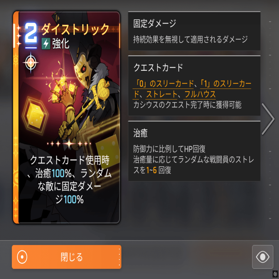 ・クエストカード使用時、回復、ランダムな敵に固定ダメージ