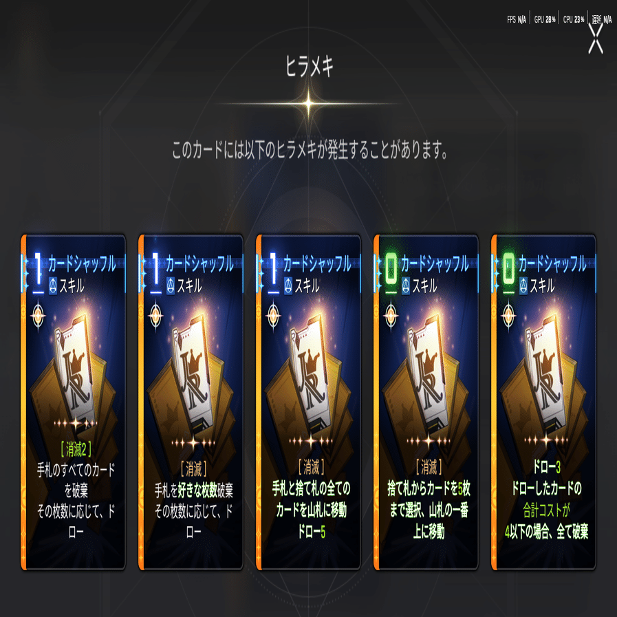・「カードシャッフル」で、手札を総入れ替えも可能