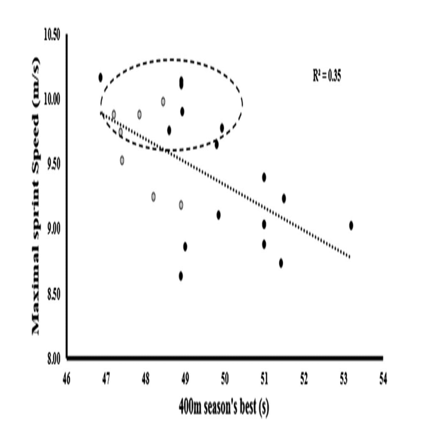 800mでは、レースのMax Sprint Speedを向上させることが一つ重要なキーファクターになってくるということを前回のNoteでは触れました。800mのレースは、200m毎、または400m毎ラップのタイムでスプリットタイムが表示されることがほとんです。それに伴って、800mの1周目のターゲットタイムが、Max Sprint Speedを考慮されずに普段の200mや400mの練習のタイムによって判断される傾向にあります。ですが、これの懸念材料として、800mのエリート選手の400mのシーズンベストとMax Speed Sprint の相関関係は有意ではなかったのです。400mのタイムを向上させることが必ずしもMSSを向上させるすなわち、レースのタイムを向上させるということではないのです。