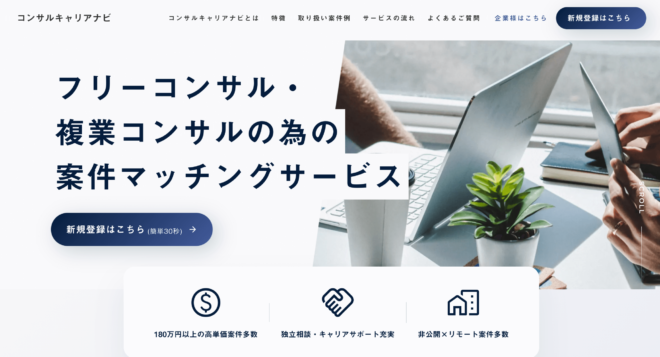 - コンサルキャリアナビ|副業・複業向けの低稼働案件やリモートワーク案件が豊富
