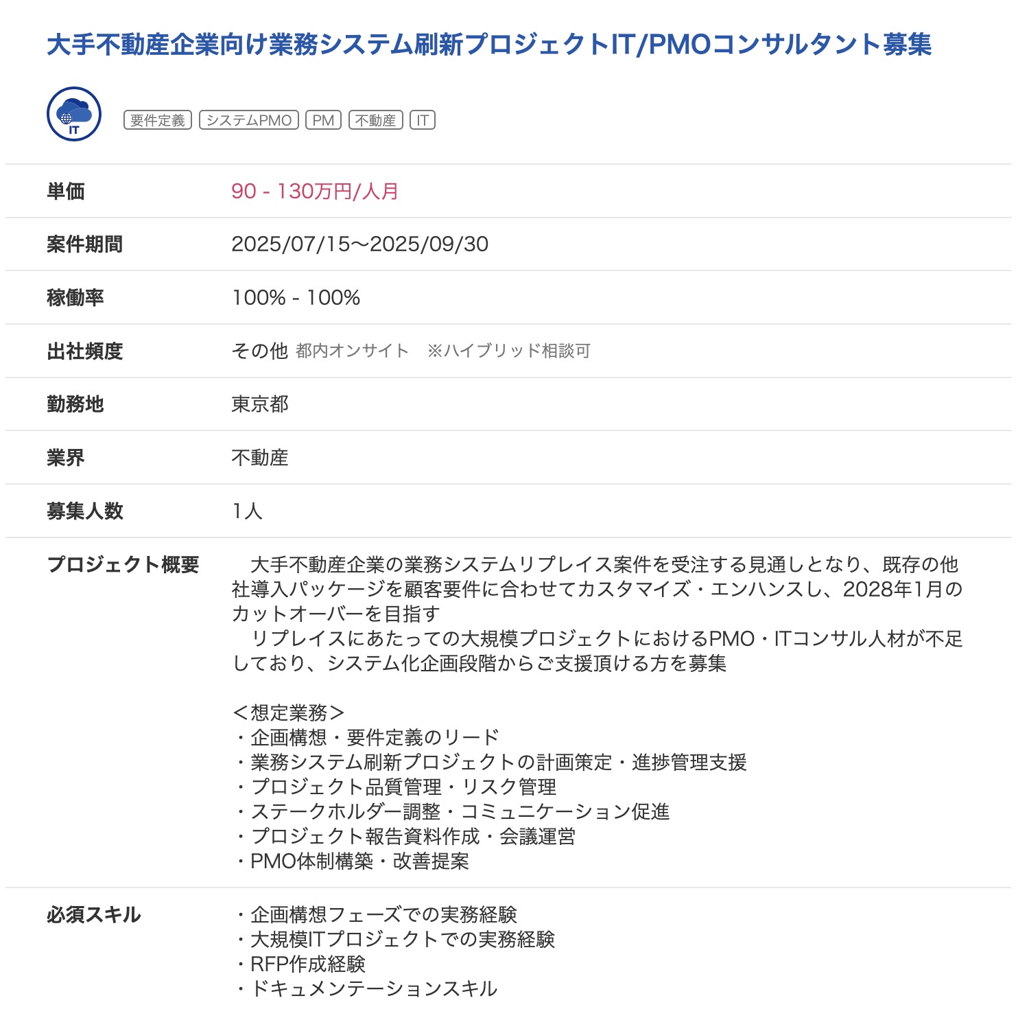- IT系コンサル案件