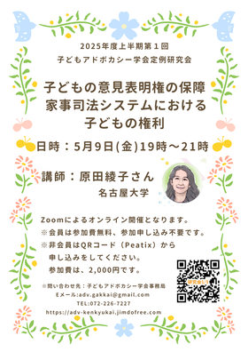 2025年度第1回・上半期子どもアドボカシー学会定例研究会のお知らせ