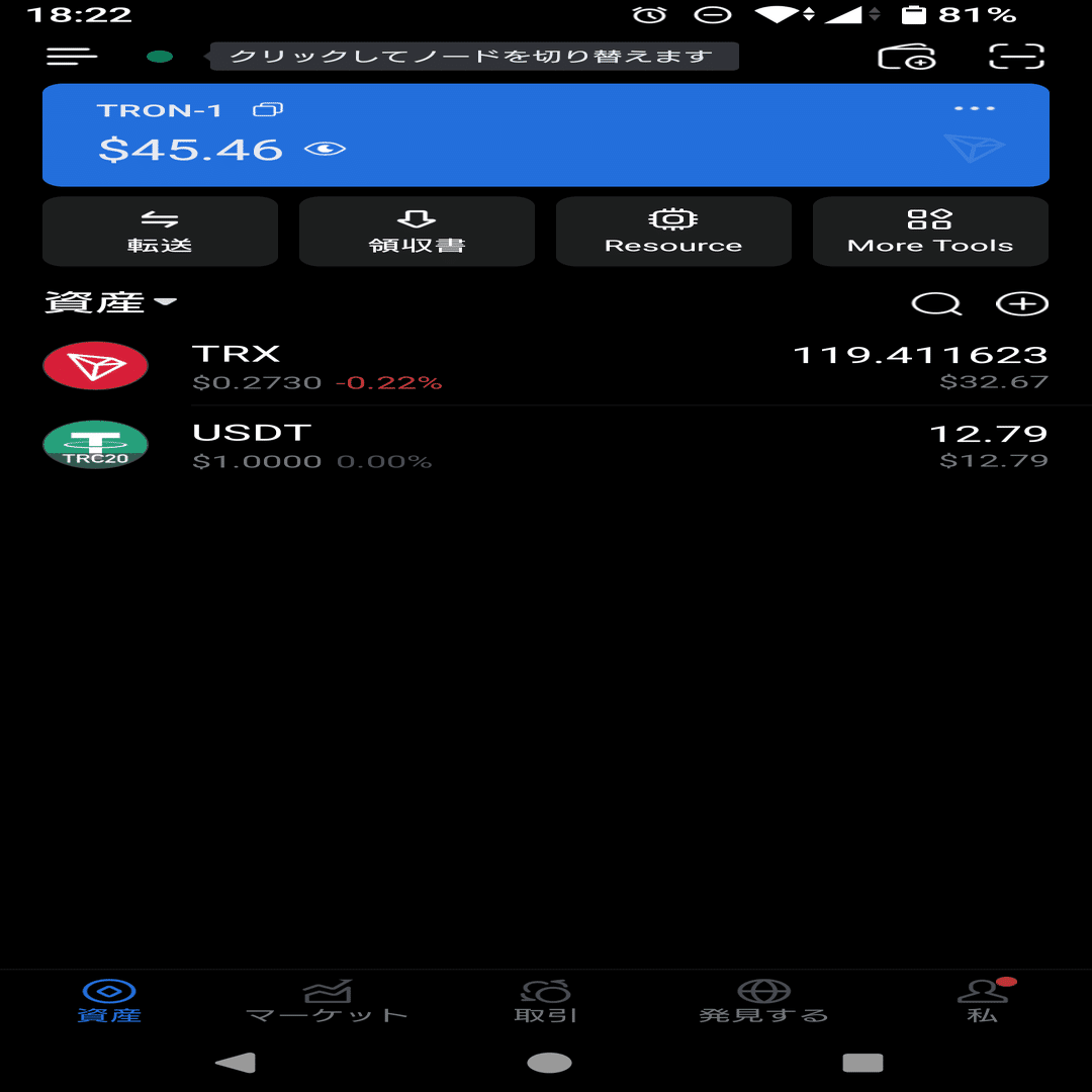 → TRXのwalletを作ってTRXをウォレットへ送る