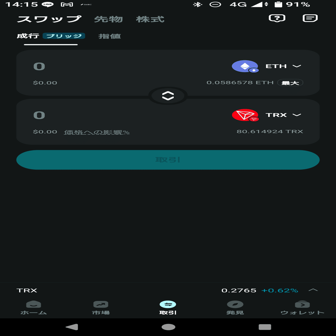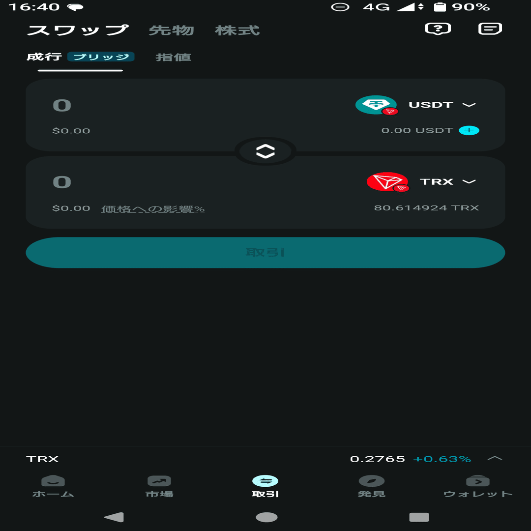 ④上のbitpointを開設しているならUSDTをTRXへスワップしそのままTRXをbitpointへ送金