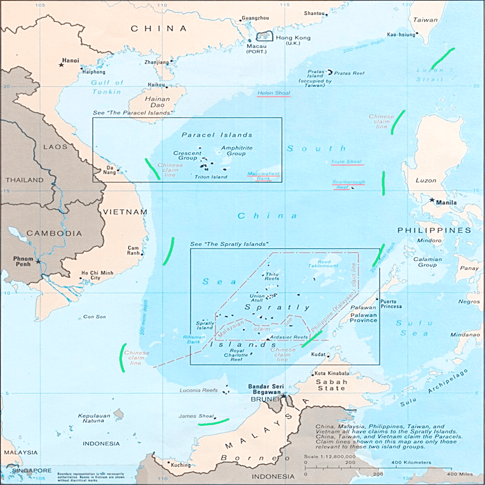 中国が主張する南シナ海の領有権「九段線」