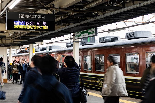 停車の各駅ではホームから多数のファンが撮影をしていた。