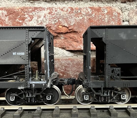 要はエンドビーム部分を切り取って縮め、ボルスタを切り外して新しいボルスタを付けて台車の位置を修正するだけのことである。但し、肝心のその台車が少ない。軸距離が小さくないと連結面からの飛び出し量が多く、当たってしまう。また、連結器座の面積が少なくなるので、通常の Kadee Coupler では場所がない。