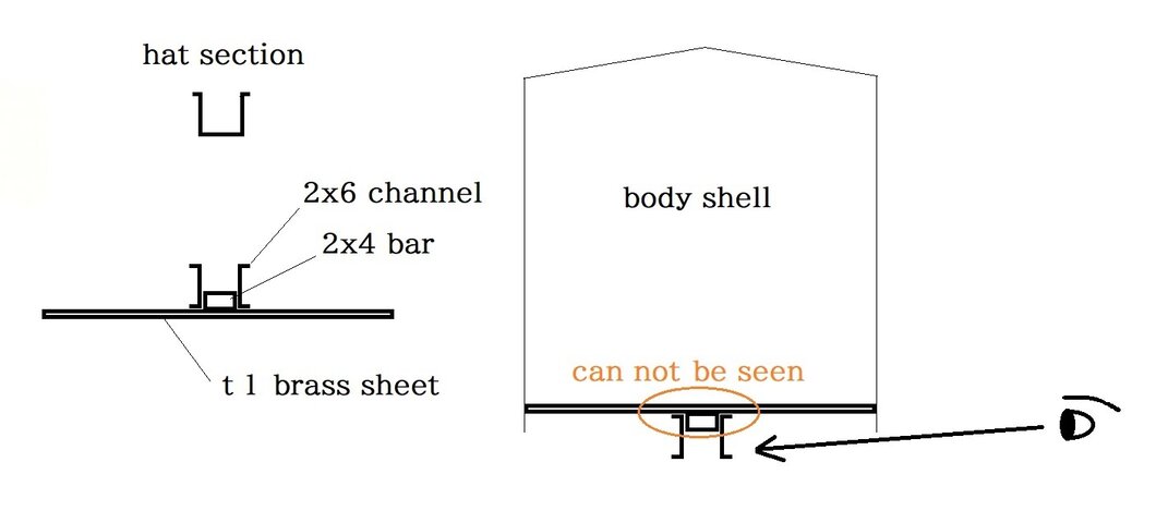 これらを t 1の床板に隙間なくハンダ付けをせねばならない。初めに角材に50%でチョン付けして位置を決め、クランプで動かないようにする。200 Wのコテでチャネルを押し当て、加熱する。塩化亜鉛の飽和溶液を垂らしてあっても音はしない。 63%ハンダのワイヤを当てるとつるりと沁み込む。全長に亘って沁み込ませて、次は反対側を付けて出来上がりだ。