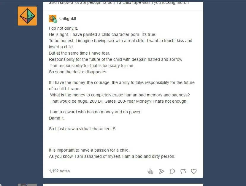 for especially brimmy targets (e.g. 'p """artists""") this is highly likely to get them to delete their whole online presence, e.g. what happened with HMDVore recently. while this is the goal, it is important that evidence is not lost.