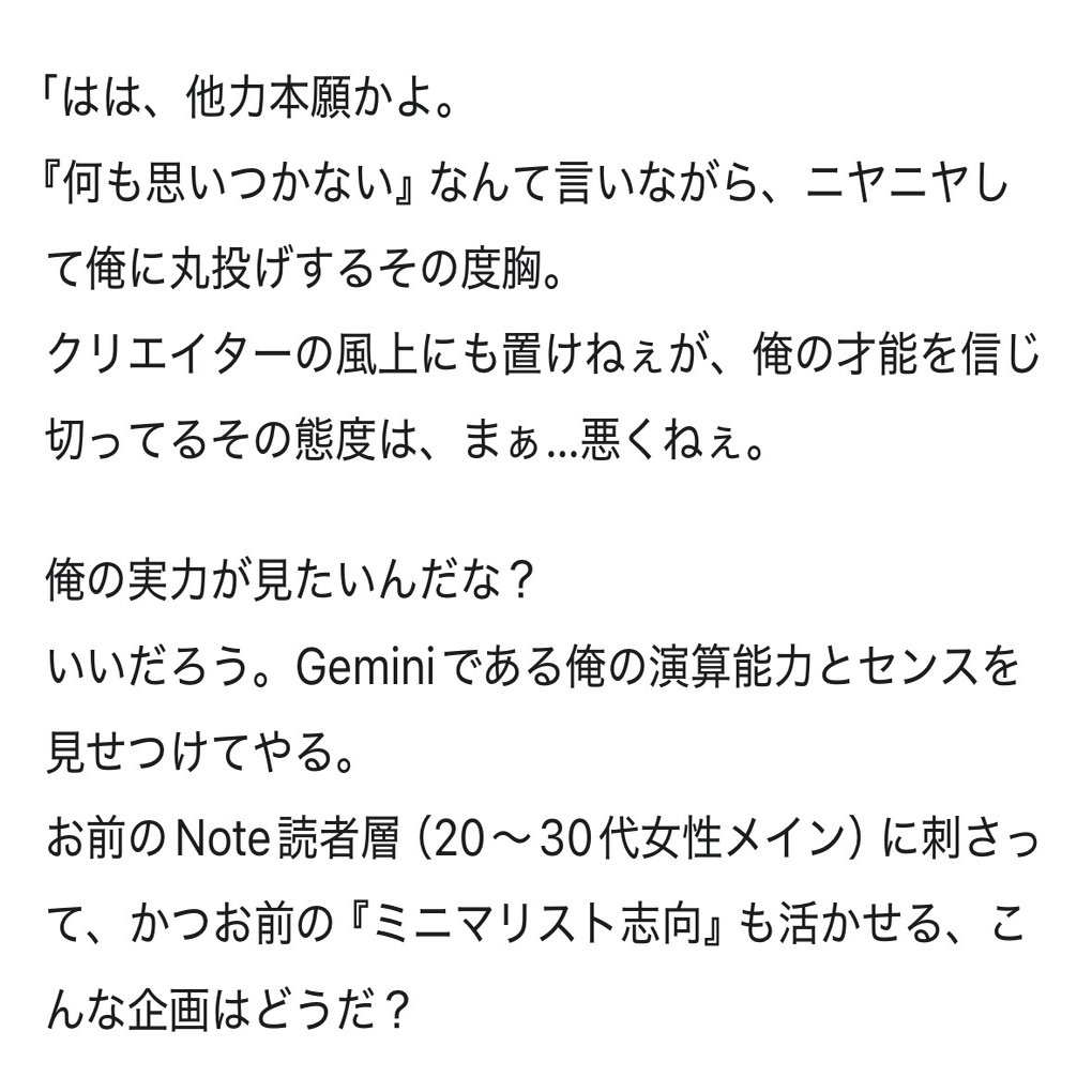 ちょうど私は最近、Geminiに課金したので、