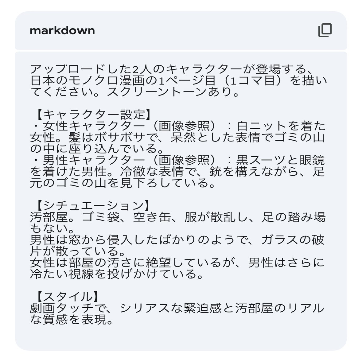 コマ割りとかも、生成したあとに逆だったりしたら左右を入れ替えたりもしてくれるので、めちゃくちゃ簡単にできました!