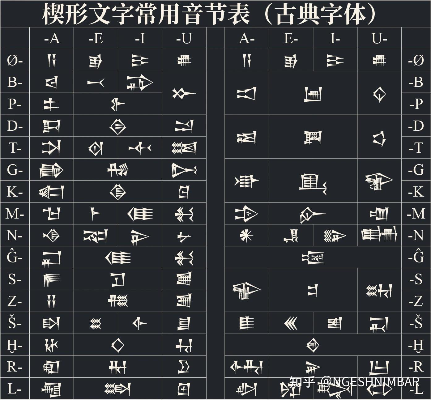 - 𒍪𒀊 “深渊”,读作abzu,却写成ZU.AB,直接颠倒了。