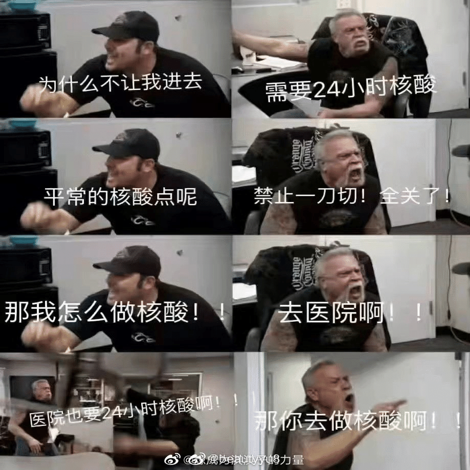 しかし、2022年に入るとオミクロン株が繰り返し流行、厳格なロックダウンなどの制限によって多くの人が疲弊するようになりました。以下は当時のネットで流行したネタです。