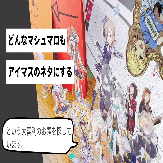 「どんなマシュマロもアイマスのネタにする」という大喜利のお題を探しています。