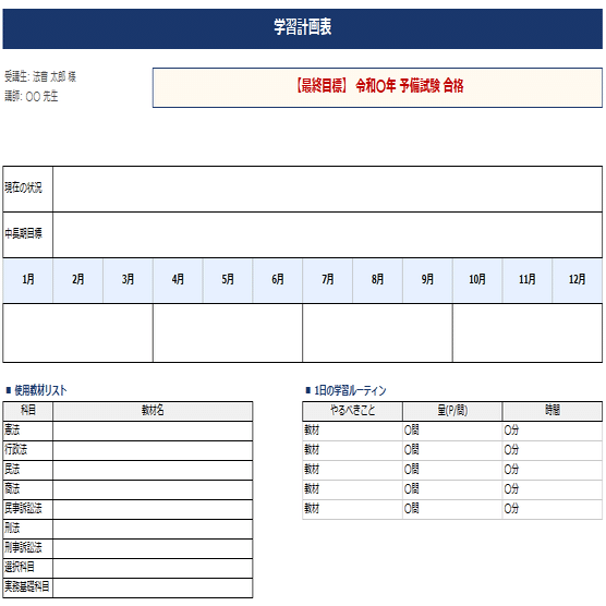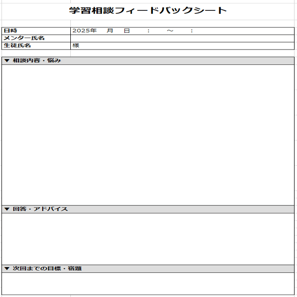 授業を受けてくれた人には、先生がまとめた学習計画表とフィードバックシートを無料でお渡しします!今後の学習に役立てていただきたいです!