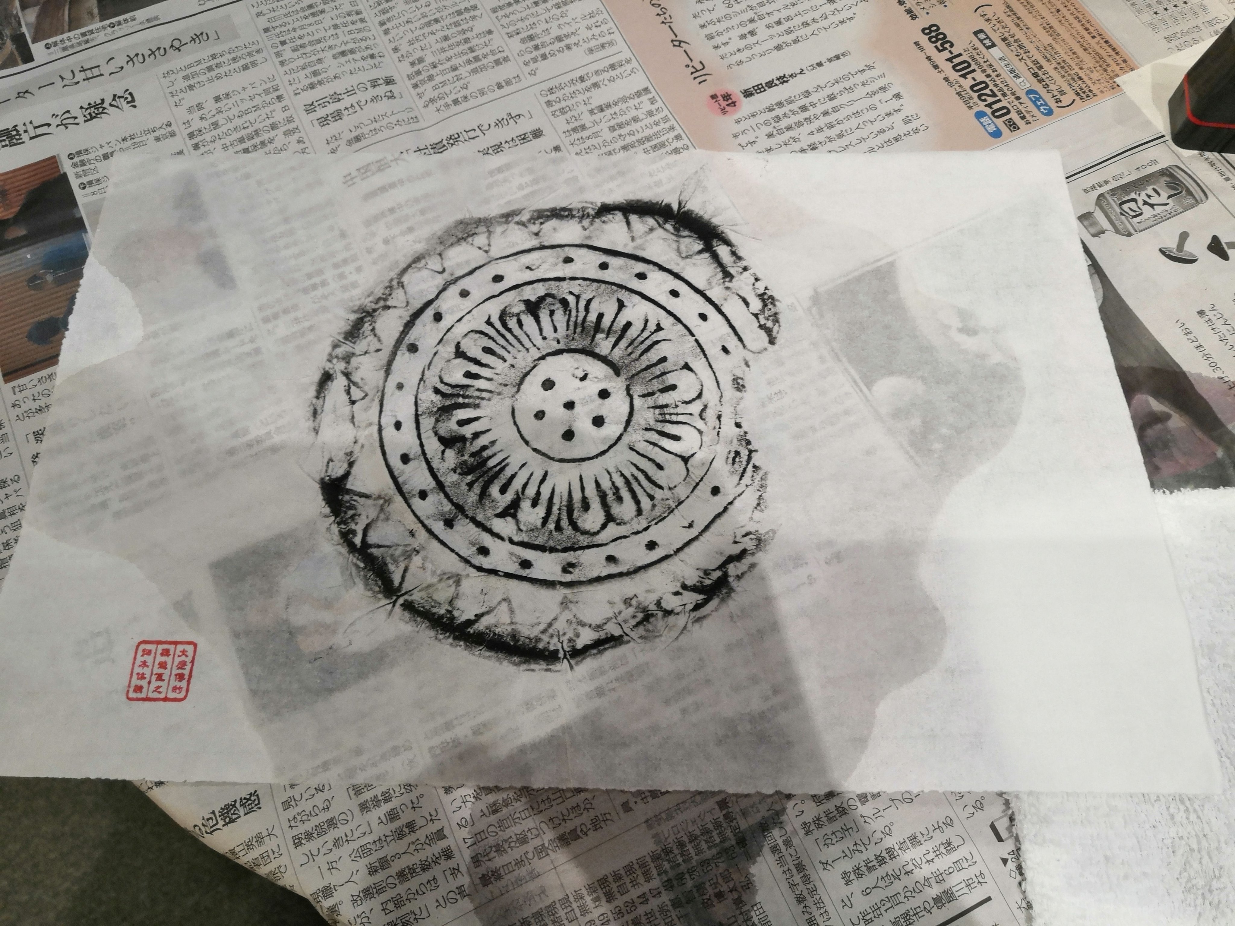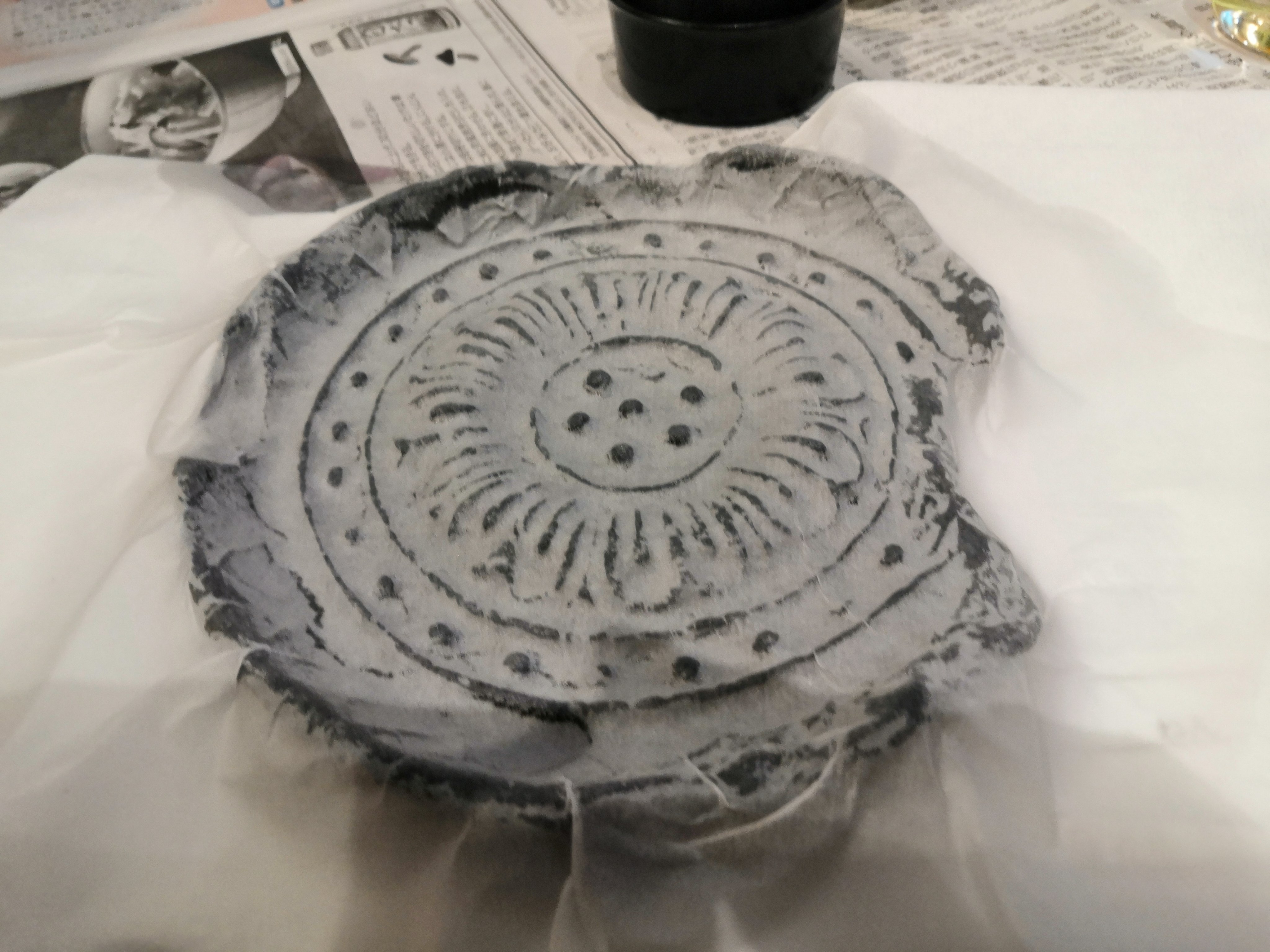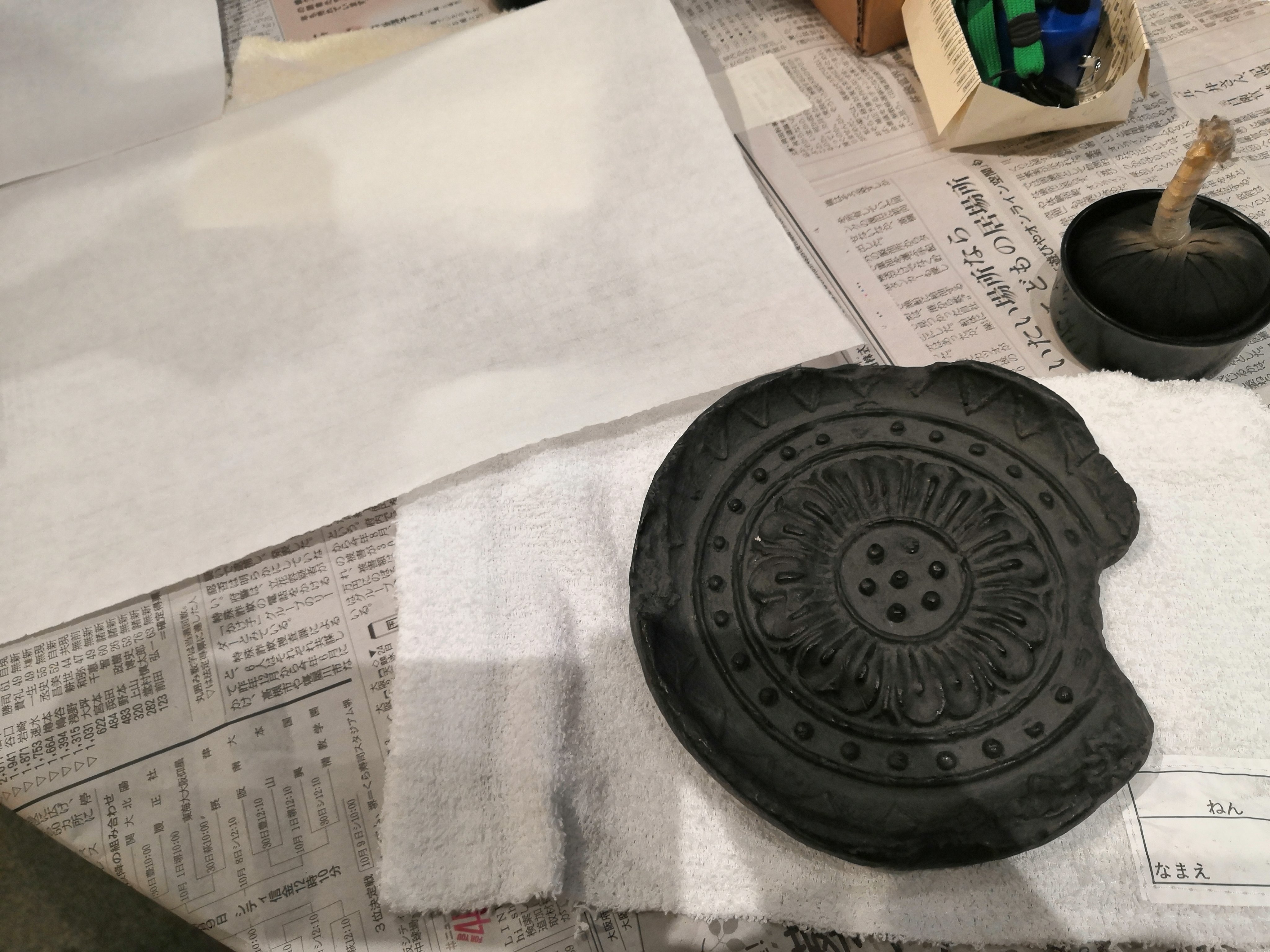 #大阪歴史博物館 で、瓦の拓本作り体験してきたよー! 博物館で拓本はよく見るけど、どうやって作ってるかちゃんと知らなかったので、興味津々で挑戦!😆 ちゃんと写し出すのが意外と難しくて時間かかったけど、綺麗に出来ました、やったね! これ、拓本見るたびに記憶が蘇りそう😆 楽しかったー!