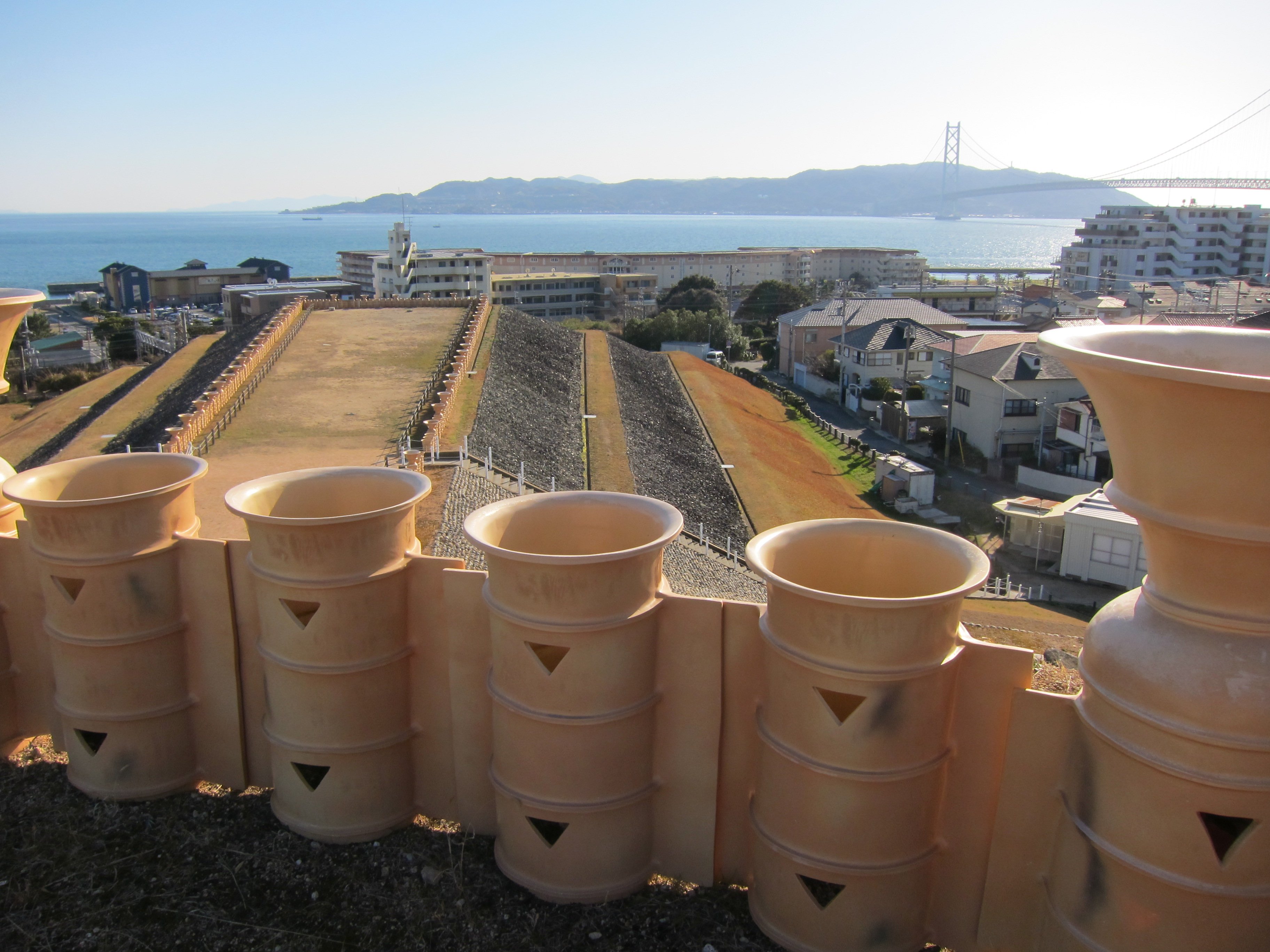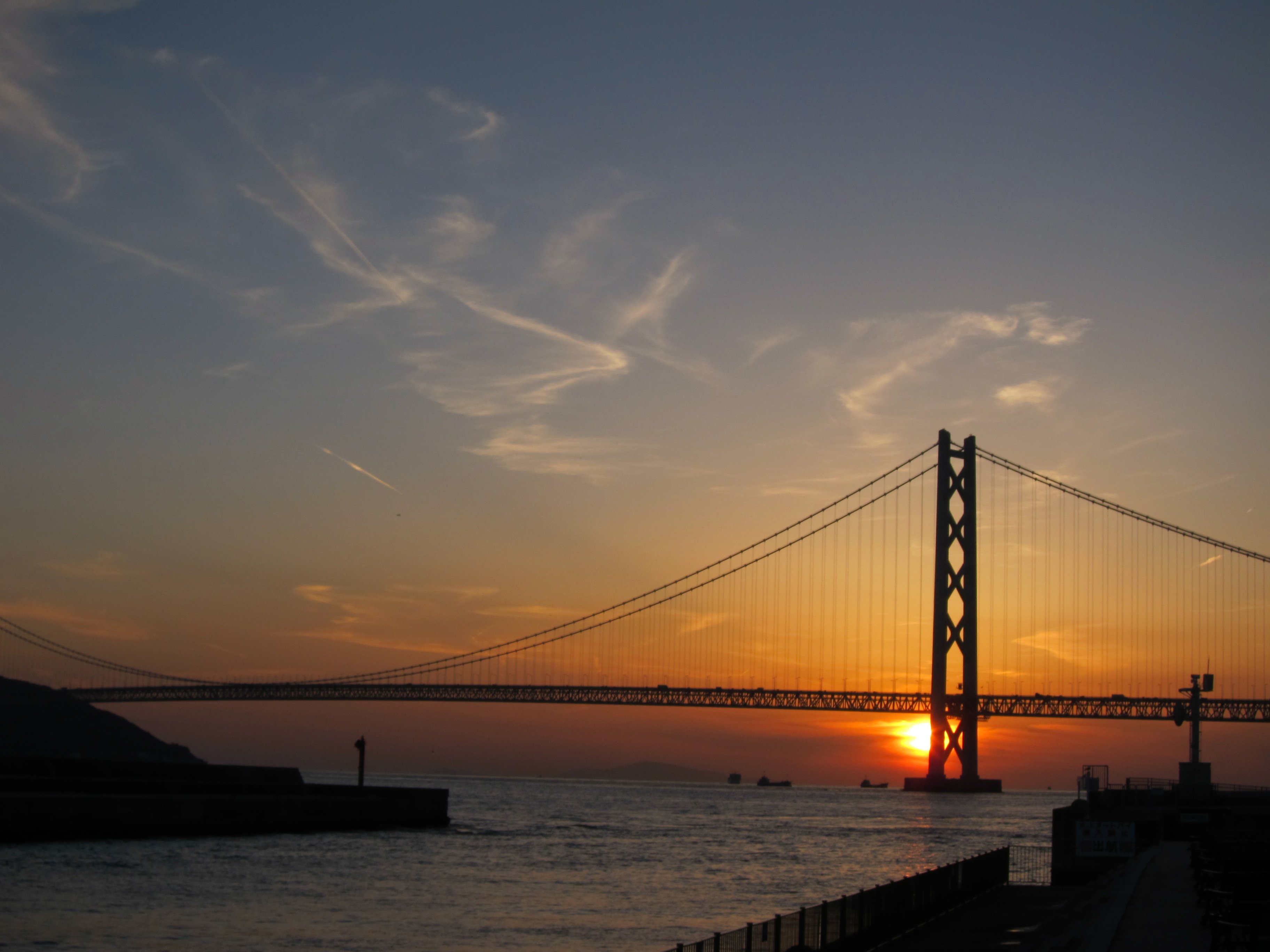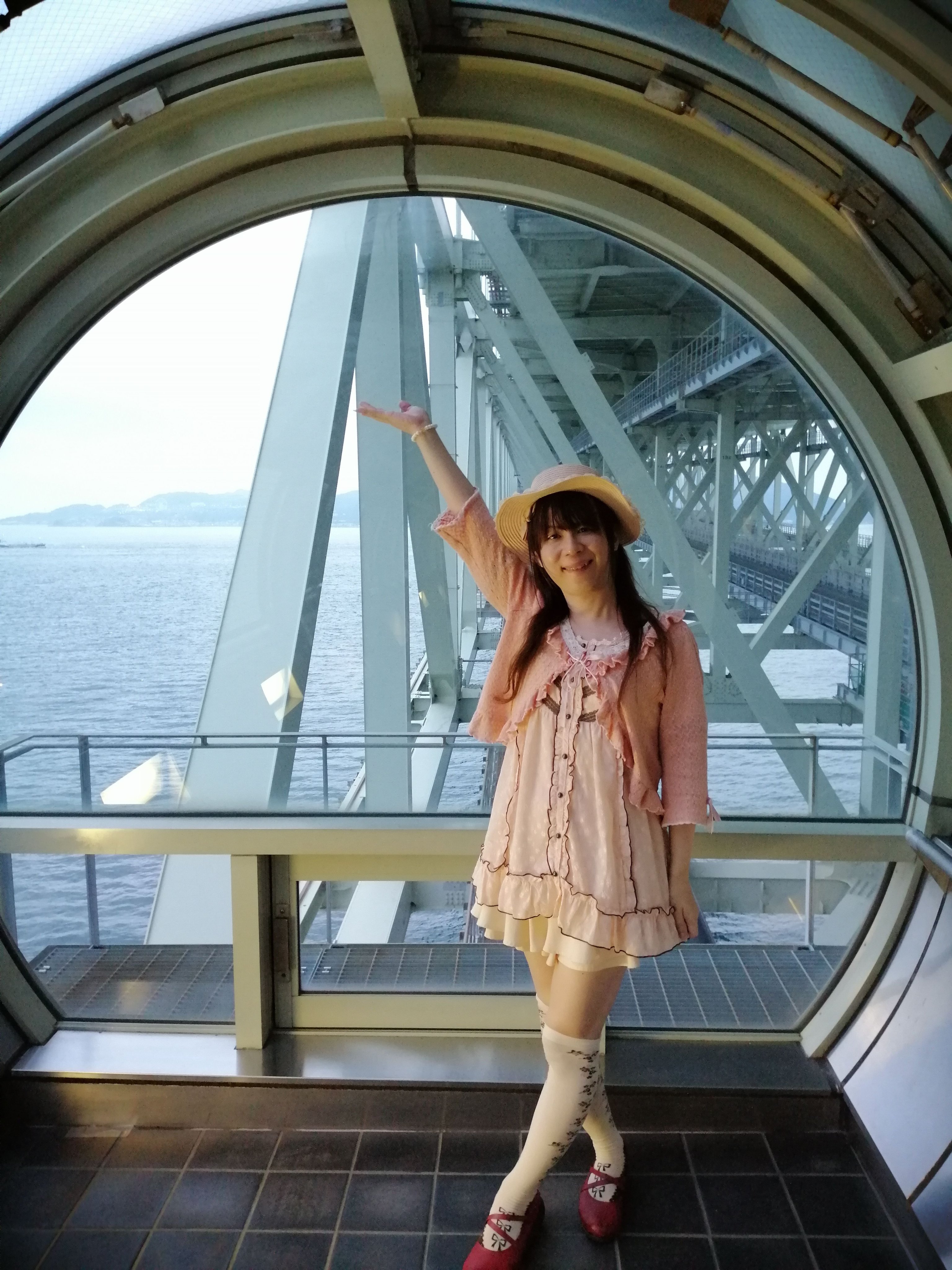 「舞子海上プロムナード」で橋桁のところを歩けて、とってもきれいな景色が楽しめましたー 透けてて下が見えるところ歩いて、なかなかの恐怖体験が出来ますー 大丈夫とわかってても、一歩目はちょっとおっかなびっくりでした。